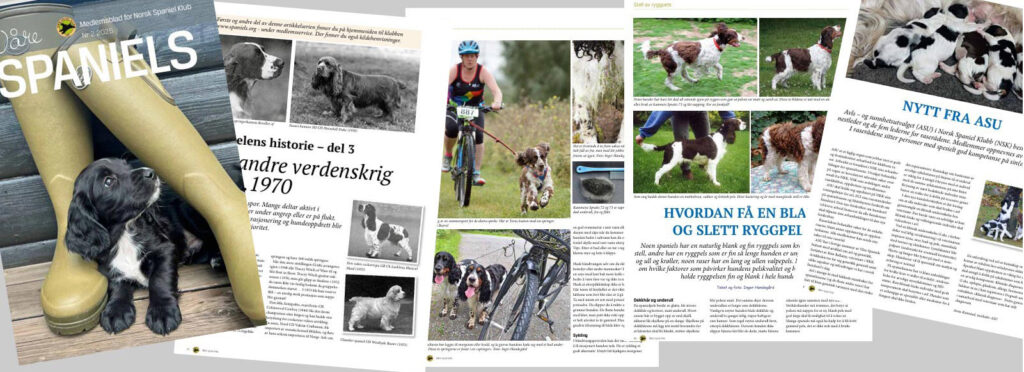 Medlemsbladet vårt, Våre Spaniels, kommer ut fire ganger årlig. Bladet er i A4 format og i fullfarge. Vi får mye skryt av bladet vårt, men for å opprettholde den gode kvaliteten er vi avhengig av at de faste spaltistene og mange medlemmer sender inn stoff og bilder i trykkekvalitet innen fristene som er satt.